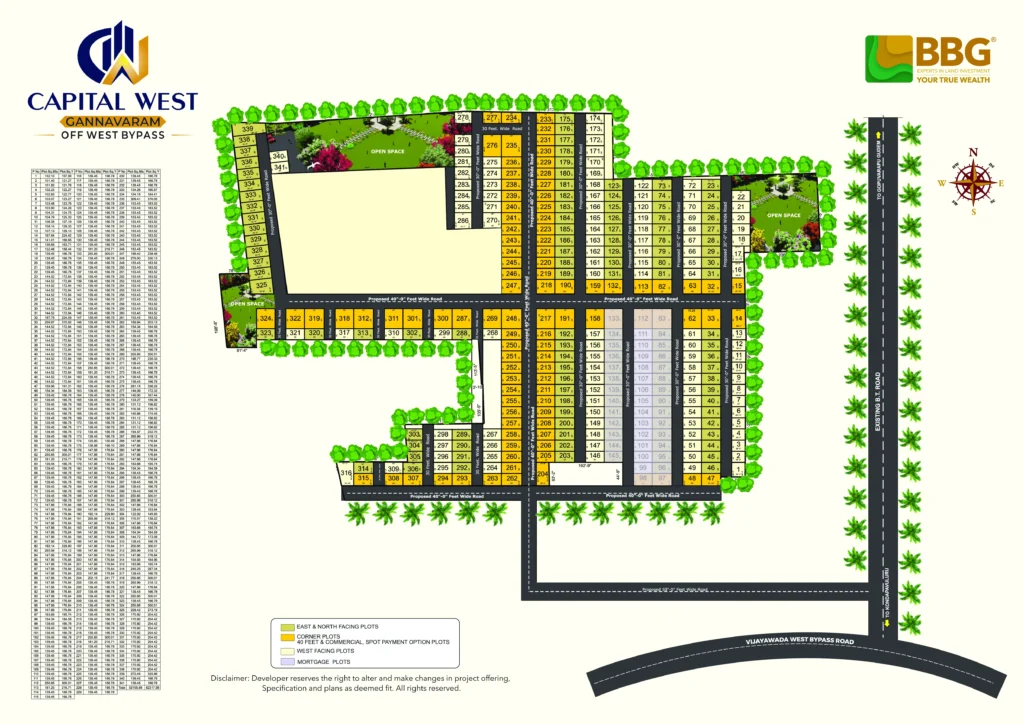 BBG Capital West refers to BBG India’s “Capital West” premium gated community project in the Nunna /Gannavaram area near Vijayawada, a large-scale development of luxury villa plots focused on smart investment, modern amenities, and connectivity to growth corridors like the Amaravati Western Route. It’s known for offering plots in a secure, amenity-rich environment with clubhouse facilities, making it a significant real estate project for BBG (Building Blocks Group) in the region.